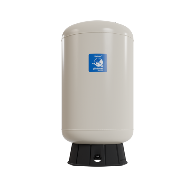 The Challenger™ 200-liter / 52.83-gallon vertical pressure tank is built for reliable and efficient performance in high-capacity systems. Its patented CAD-2 diaphragm technology ensures consistent air and water separation, while the chlorine-resistant butyl diaphragm and copolymer polypropylene liner provide long-lasting durability.